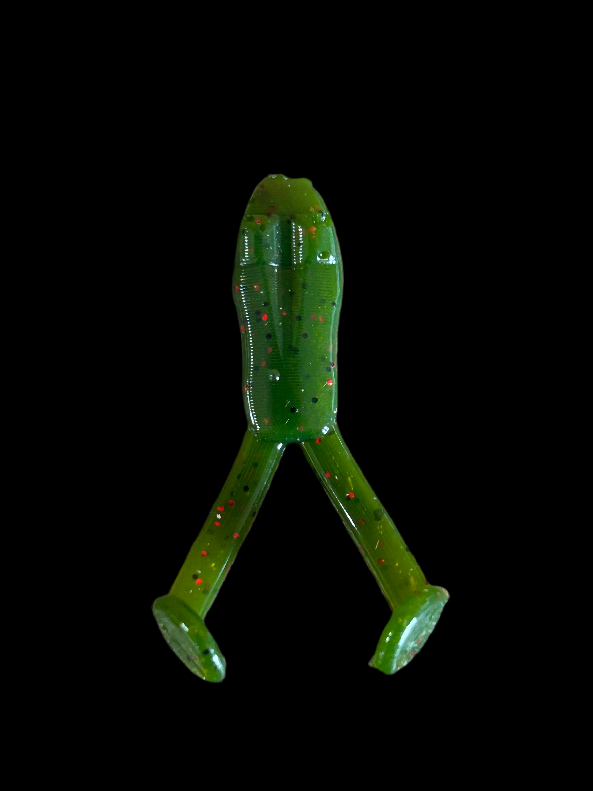 These 1.7” Frogs come in a pack of 20 and are coated in licorice scent and worm oil. They are great all around baits for catching things from bass to panfish. Their smaller form is perfect at imitating small frogs that offer an easy snack for surrounding fish. They have a very realistic body and flailing tails that have great action to draw in fish.